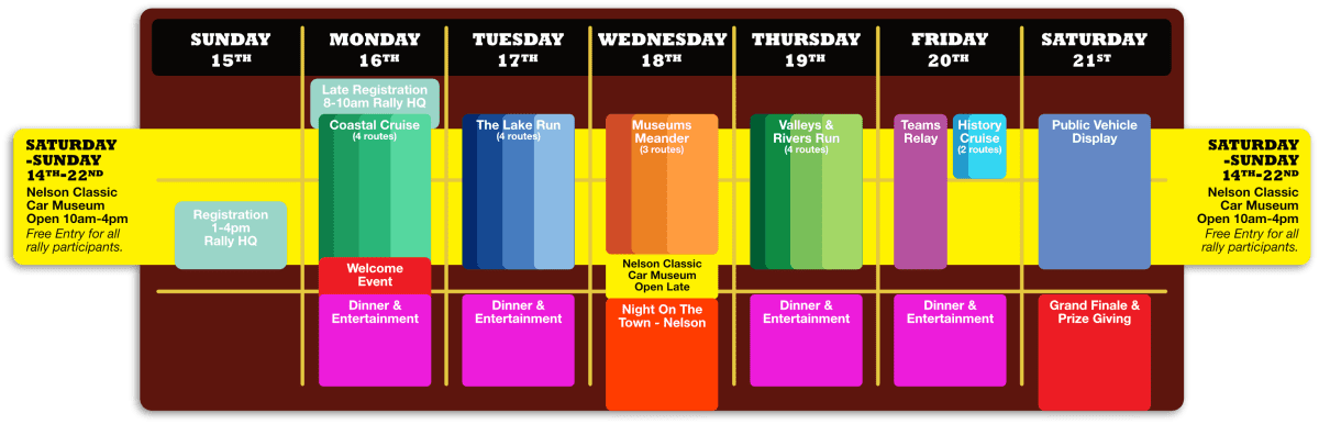 Registrations March 15, 2026 @ 2:00 pm - 5:00 pm Registration at the Trafalgar Centre. Register and collect your rally packs this afternoon so you're ready […]